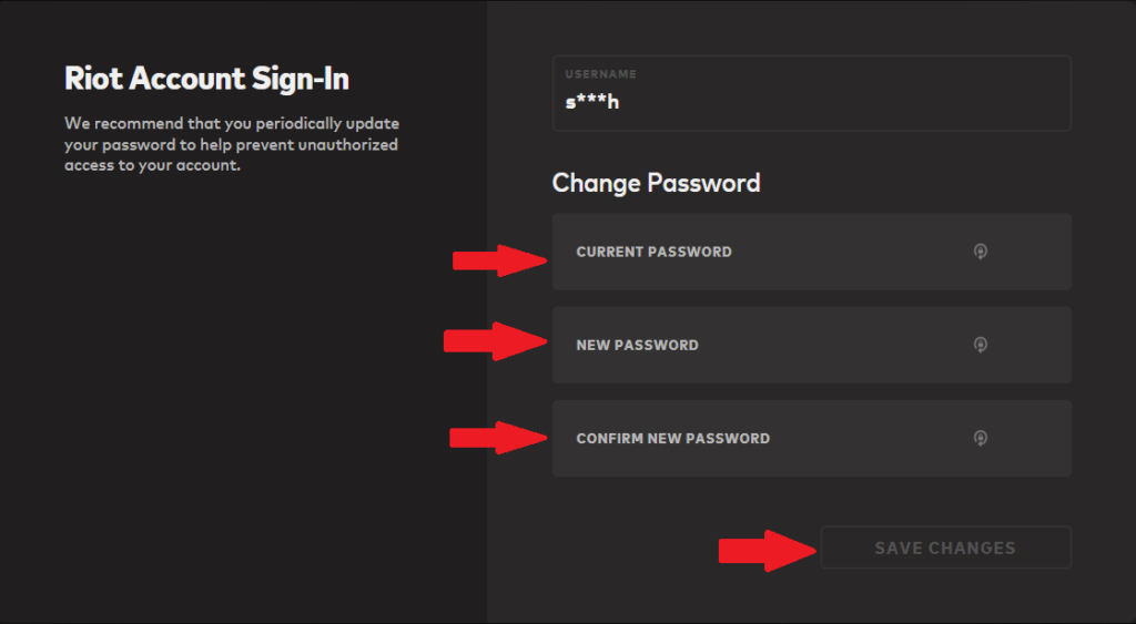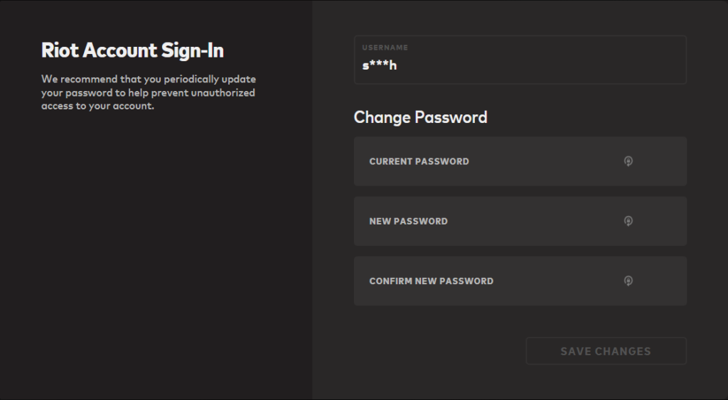 Debe cambiar su contraseña de Riot Games al menos cada pocos meses para evitar el acceso no autorizado a su cuenta. Puede cambiar esto desde el mismo menú donde cambia su ID y eslogan de Riot.