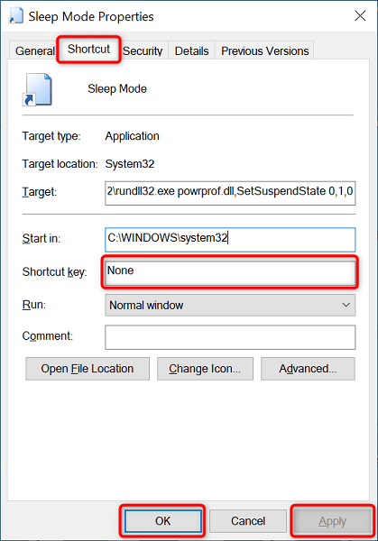 Ahora puede asignar un atajo de teclado al atajo del modo de suspensión, para que su PC entre en modo de suspensión con una pulsación de tecla:
