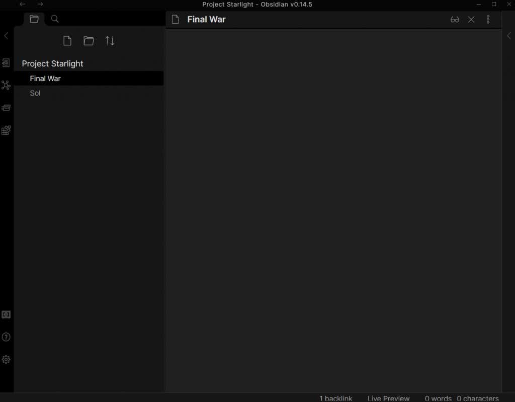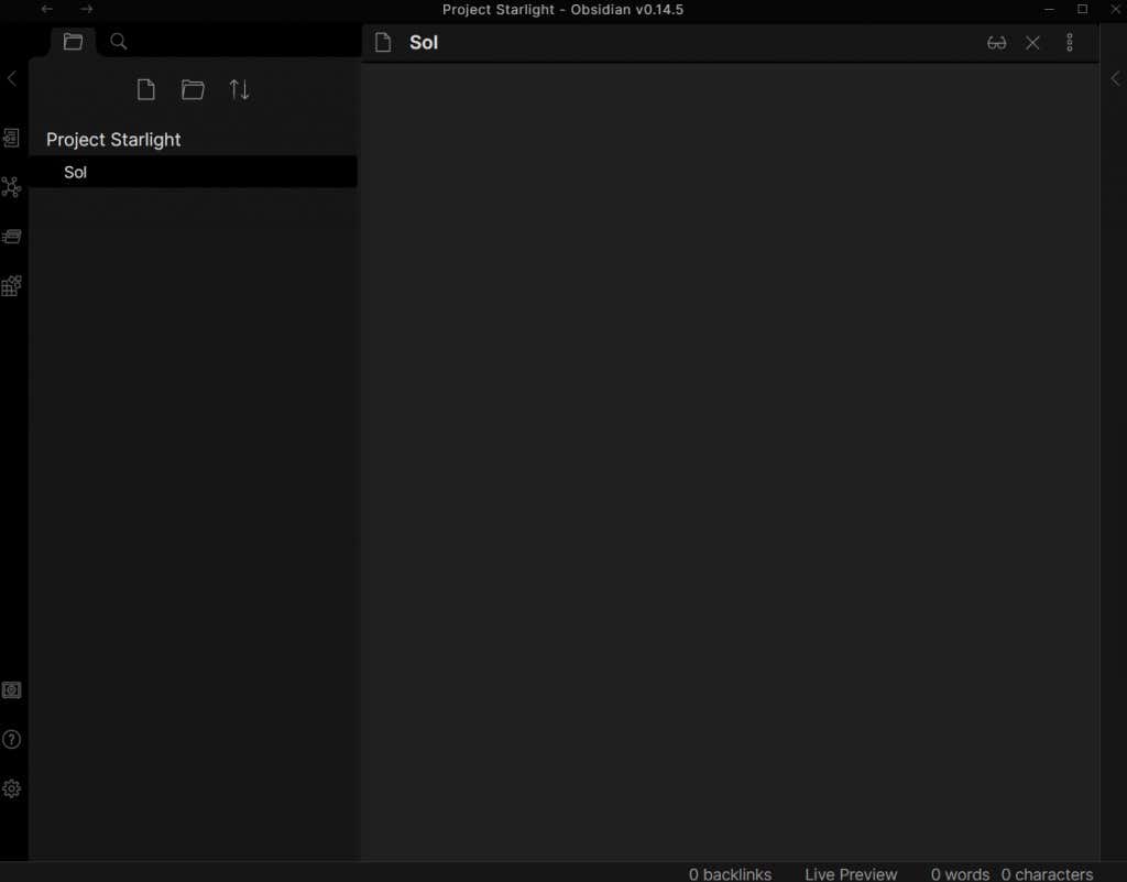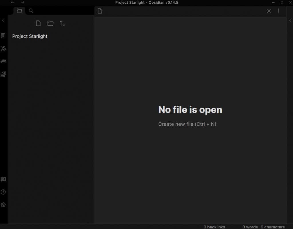 - La bóveda se abrirá en la vista de Proyecto estándar, mostrando una lista de todos sus archivos y el texto del archivo seleccionado actualmente. Excepto que no hay nada que mostrar todavía, así que obtienes un lienzo en blanco.