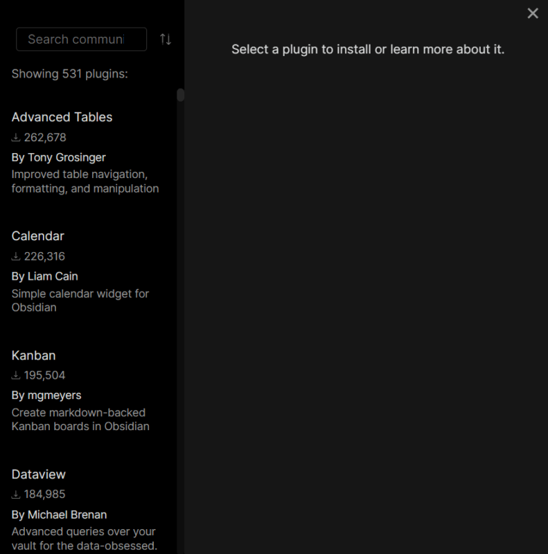 - Después de seleccionar un complemento, simplemente haga clic en el Instalar botón para agregarlo a Obsidian.
