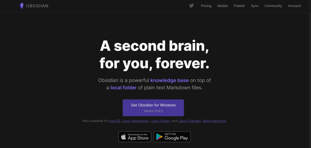- Primero, descargue Obsidian del sitio web oficial. Hay un instalador para Windows, junto con Mac y varias distribuciones de Linux. Los usuarios móviles pueden dirigirse a Google Play Store y Apple App Store para instalar Obsidian en sus teléfonos inteligentes.
